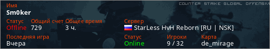 Играет на Counter Strike Global Offensive сервере. Страна: РоссияПервый раз замечен 11:37 20.11.2025