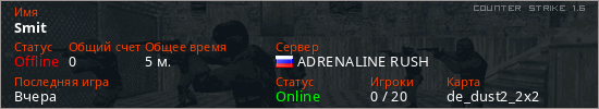 Последний раз был в сети Вчера Игрок с таким ником замечен на 15 серверах