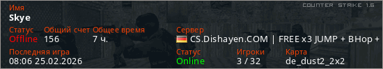 Последний раз был в сети 08:06 25.02.2026 Игрок с таким ником замечен на 4 серверах