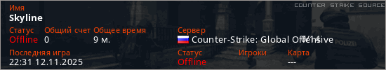 Играет на Counter Strike Source сервере. Страна: РоссияПервый раз замечен 21:54 12.11.2025