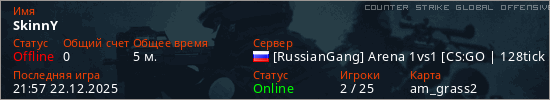 Играет на Counter Strike Global Offensive сервере. Страна: РоссияПервый раз замечен 21:49 22.12.2025