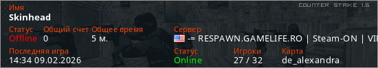 Играет на Counter Strike 1.6 сервере. Страна: СШАПервый раз замечен 14:30 09.02.2026