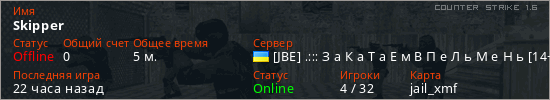 Играет на Counter Strike 1.6 сервере. Страна: УкраинаПервый раз замечен 00:37 23.04.2026