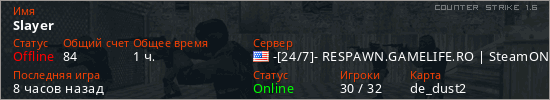 Играет на Counter Strike 1.6 сервере. Страна: СШАПервый раз замечен 13:31 18.08.2025