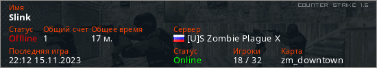 Играет на Counter Strike 1.6 сервере. Страна: РоссияПервый раз замечен 22:09 14.11.2023