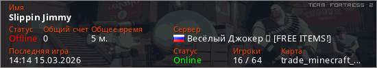 Играет на Team Fortress 2 сервере. Страна: РоссияПервый раз замечен 13:32 15.03.2026