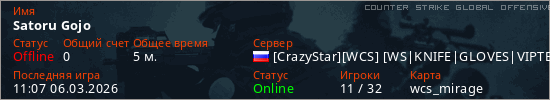 Играет на Counter Strike Global Offensive сервере. Страна: РоссияПервый раз замечен 10:55 06.03.2026