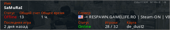 Последний раз был в сети Вчера Игрок с таким ником замечен на 17 серверах
