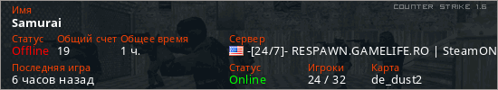 Играет на Counter Strike 1.6 сервере. Страна: СШАПервый раз замечен 17:31 22.04.2025