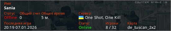 Играет на Counter Strike 1.6 сервере. Страна: УкраинаПервый раз замечен 20:09 07.01.2026
