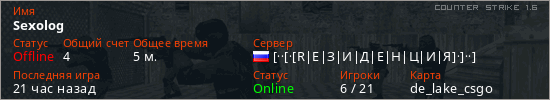 Последний раз был в сети 20 часов назад Игрок с таким ником замечен на 2 серверах