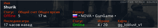 Последний раз был в сети 16 часов назад Игрок с таким ником замечен на 22 серверах