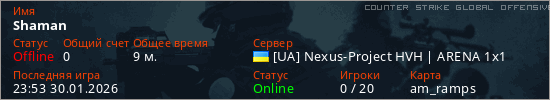 Играет на Counter Strike Global Offensive сервере. Страна: УкраинаПервый раз замечен 23:13 30.01.2026