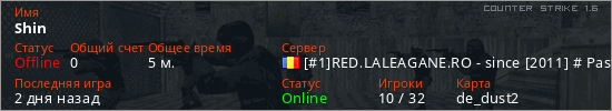 Играет на Counter Strike 1.6 сервере. Страна: РумынияПервый раз замечен 16:16 14.04.2026