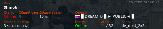 Последний раз был в сети 2 часа назад Игрок с таким ником замечен на 16 серверах