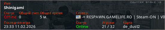 Играет на Counter Strike 1.6 сервере. Страна: СШАПервый раз замечен 23:24 11.02.2026