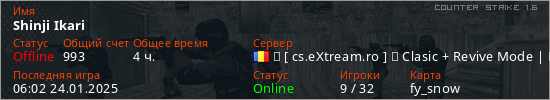 Играет на Counter Strike 1.6 сервере. Страна: РумынияПервый раз замечен 07:54 05.12.2024