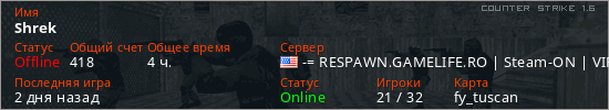 Играет на Counter Strike 1.6 сервере. Страна: СШАПервый раз замечен 12:56 16.03.2025