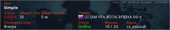Играет на Counter Strike Global Offensive сервере. Страна: РоссияПервый раз замечен 14:51 01.03.2026