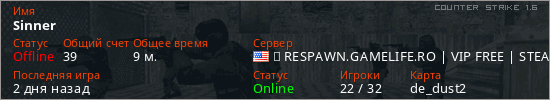 Последний раз был в сети 2 дня назад Игрок с таким ником замечен на 16 серверах