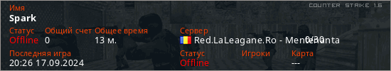 Играет на Counter Strike 1.6 сервере. Страна: РумынияПервый раз замечен 18:52 09.09.2023