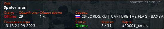 Последний раз был в сети 13:13 24.09.2023 Игрок с таким ником замечен на 2 серверах