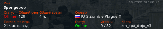 Играет на Counter Strike 1.6 сервере. Страна: РоссияПервый раз замечен 12:07 23.03.2026