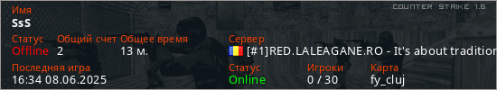 Играет на Counter Strike 1.6 сервере. Страна: РумынияПервый раз замечен 15:13 22.08.2023