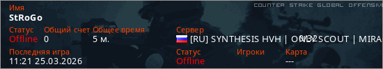 Играет на Counter Strike Global Offensive сервере. Страна: РоссияПервый раз замечен 11:19 25.03.2026