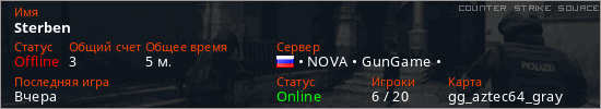 Последний раз был в сети Вчера Игрок с таким ником замечен на 23 серверах