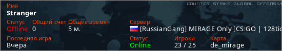 Играет на Counter Strike Global Offensive сервере. Страна: РоссияПервый раз замечен 16:52 01.03.2026