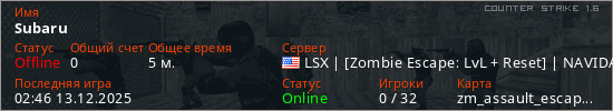 Играет на Counter Strike 1.6 сервере. Страна: СШАПервый раз замечен 02:44 13.12.2025