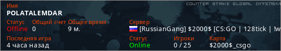 Играет на Counter Strike Global Offensive сервере. Страна: РоссияПервый раз замечен 21:40 05.02.2026