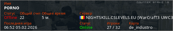 Играет на Counter Strike 1.6 сервере. Страна: РумынияПервый раз замечен 06:50 05.02.2026