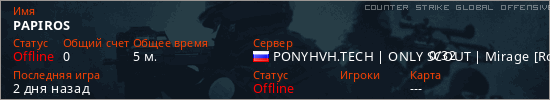 Играет на Counter Strike Global Offensive сервере. Страна: РоссияПервый раз замечен 15:17 01.04.2026
