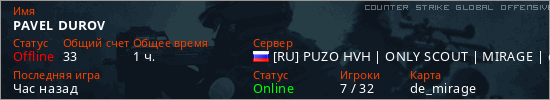 Играет на Counter Strike Global Offensive сервере. Страна: РоссияПервый раз замечен 03:30 07.03.2026
