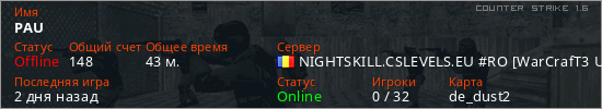 Играет на Counter Strike 1.6 сервере. Страна: РумынияПервый раз замечен 23:15 14.01.2026