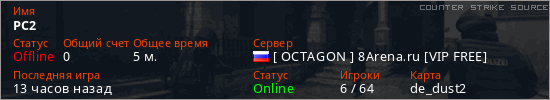 Последний раз был в сети 8 часов назад Игрок с таким ником замечен на 3 серверах
