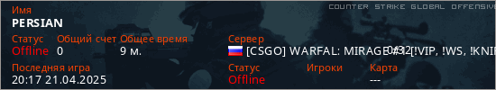 Играет на Counter Strike Global Offensive сервере. Страна: РоссияПервый раз замечен 19:39 21.04.2025