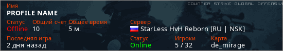 Играет на Counter Strike Global Offensive сервере. Страна: РоссияПервый раз замечен 12:49 20.01.2026