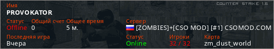 Последний раз был в сети Вчера Игрок с таким ником замечен на 18 серверах