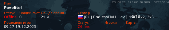 Играет на Counter Strike Global Offensive сервере. Страна: РоссияПервый раз замечен 18:27 17.12.2025