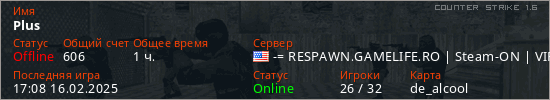 Играет на Counter Strike 1.6 сервере. Страна: СШАПервый раз замечен 16:07 16.02.2025