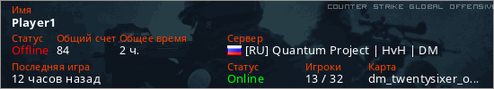 Играет на Counter Strike Global Offensive сервере. Страна: РоссияПервый раз замечен 11:57 23.03.2026