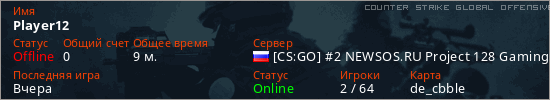 Последний раз был в сети Вчера Игрок с таким ником замечен на 55 серверах