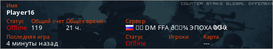 Играет на Counter Strike Global Offensive сервере. Страна: РоссияПервый раз замечен 16:31 04.03.2026