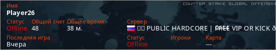 Играет на Counter Strike Global Offensive сервере. Страна: РоссияПервый раз замечен 22:00 25.01.2025