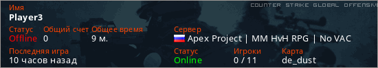 Последний раз был в сети 9 часов назад Игрок с таким ником замечен на 84 серверах