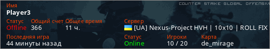 Последний раз был в сети Час назад Игрок с таким ником замечен на 70 серверах
