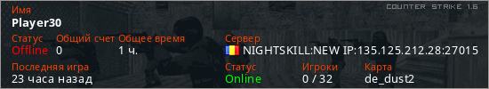 Последний раз был в сети 21 час назад Игрок с таким ником замечен на 25 серверах